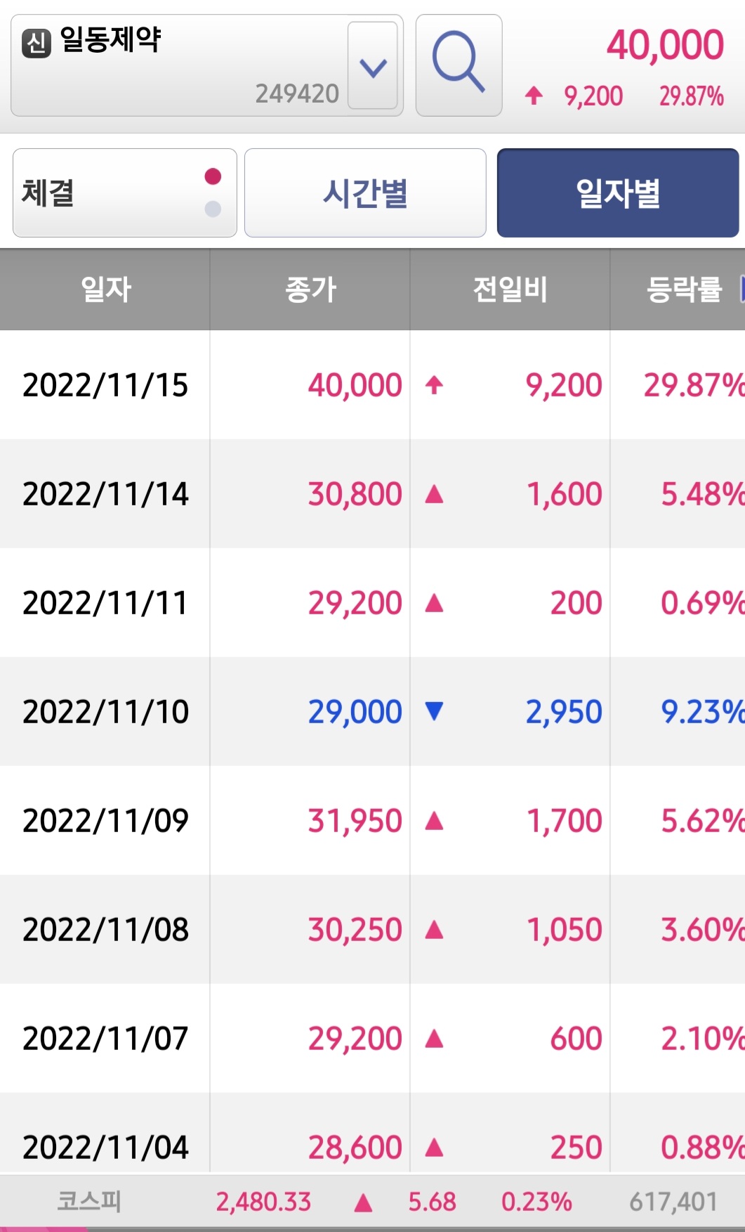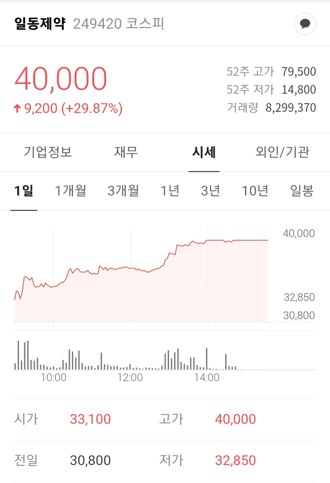 일동제약이 코로나19경구치료제 조코바의 일본 긴급사용승인의 기대감으로 15일 주가가 종가 40,000원으로 상한가 마감을 하였습니다 1주일여 오름세를 보이다 10일 9.23% 하락을 하며 조정을 보이는 듯 하더니 결국 금일 상한가 기록을 하였는데 일동제약 주가 급등 원인으로 일본 내에서 코로나 경구치료제 (조코바)가 승인을 받을 것으로 기대가 높은 것이 급등의 원인으로 분석이 되는데 일본노동성에 따르자면 22일 약사,식품 위생 심의협의회를 통해 조코바의 긴급사용승인 여부가 결정될 예정 이라고 합니다