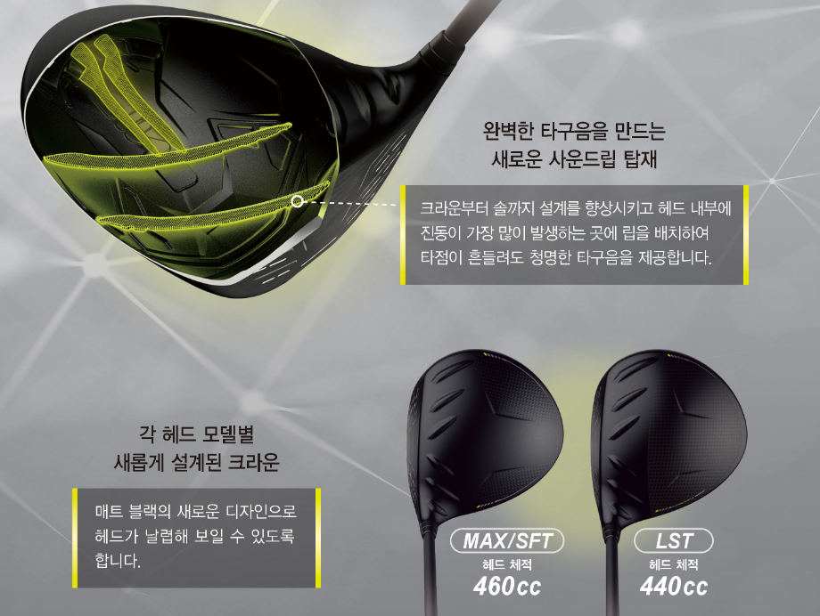 임팩트시 소리의 퍼짐을 줄이기 위해 기존의 어쿠스틱 립을 다른 형태로 재설계 하여 타구음을 개선 하였다고 하니